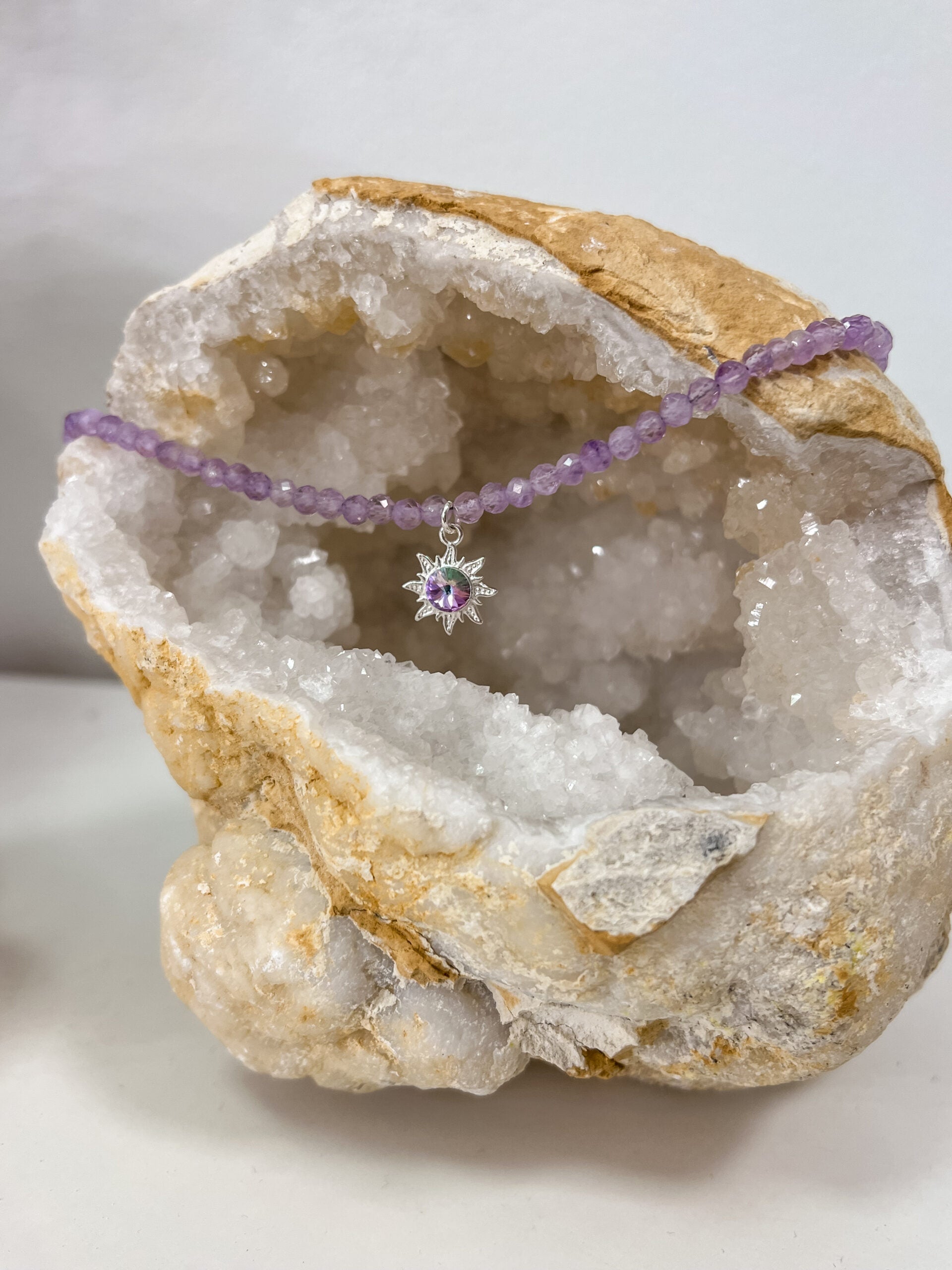 Levandinio Ametisto vėrinys su saulute, 4mm